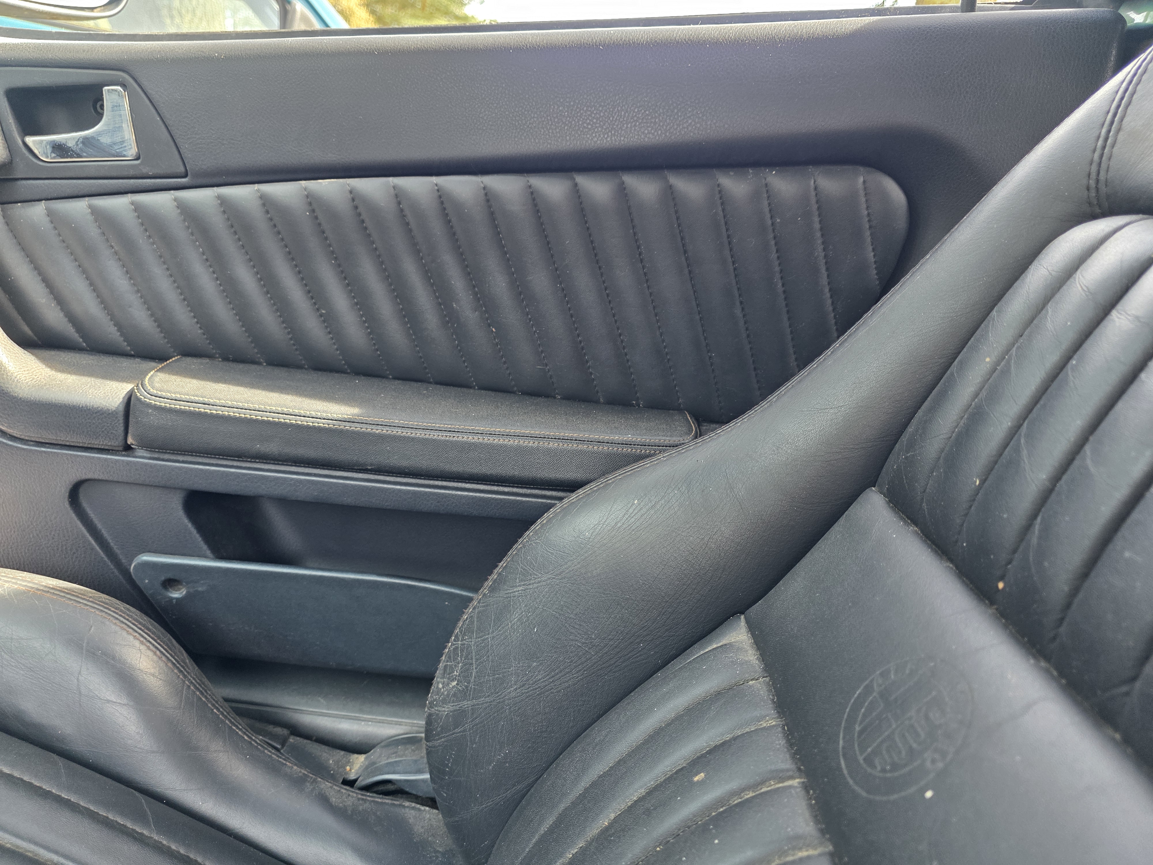 Hij heeft het mooie leren Momo interieur welke nog onbeschadigd is, zonder de versleten wangen. Origineel muisgrijs tapijt dat de tijd goed doorstaan heeft.
